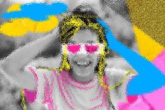 Abstract art, collage with female portrait and mountains, generative ai